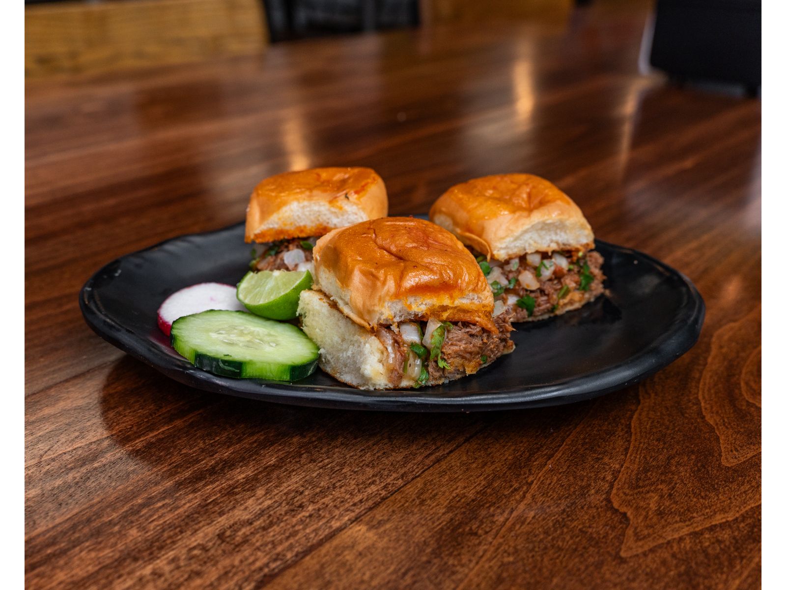 3 slider buns,cheese,birria,onions ,cilantro & sauce