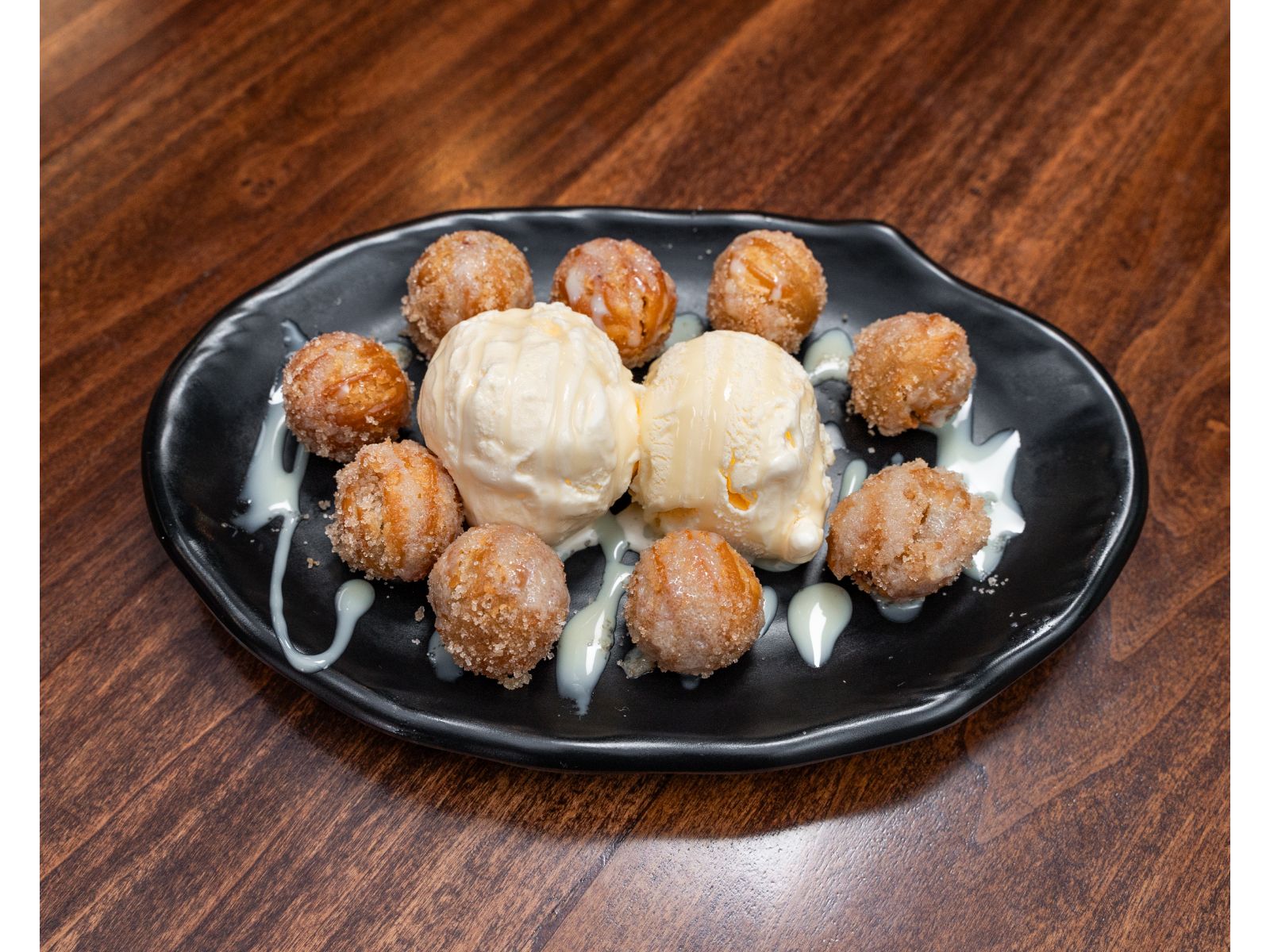 CRURROS FILLED W/CARAMEL,CONDENSED MILK DRIZZLED AND ICE CREAM