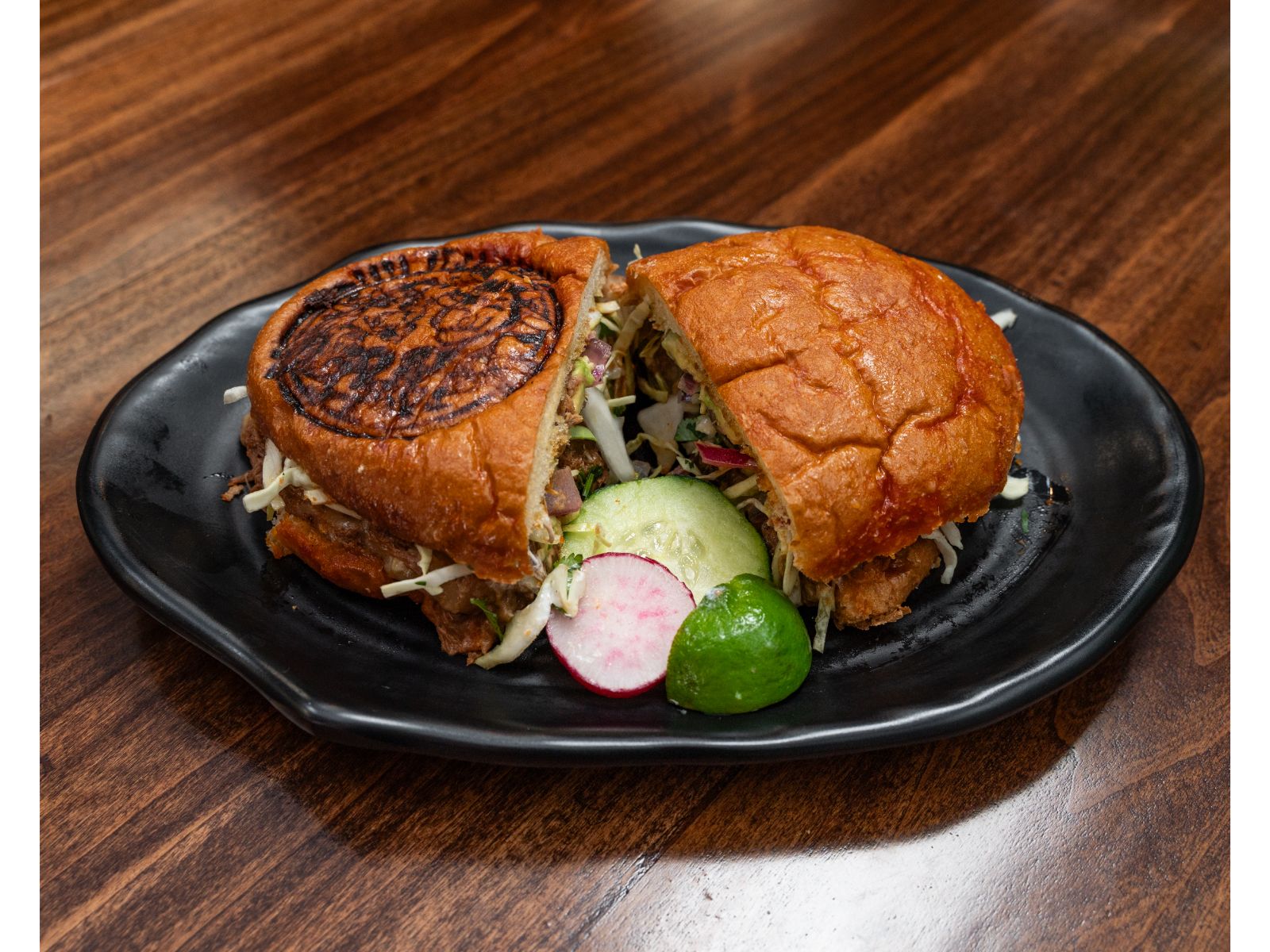 BREAD, BEANS,CHEESE,PASTOR,LETTUCE,TOMATO,CILANTRO ,ONIONS ,AVOCADO & SOUR CREAM